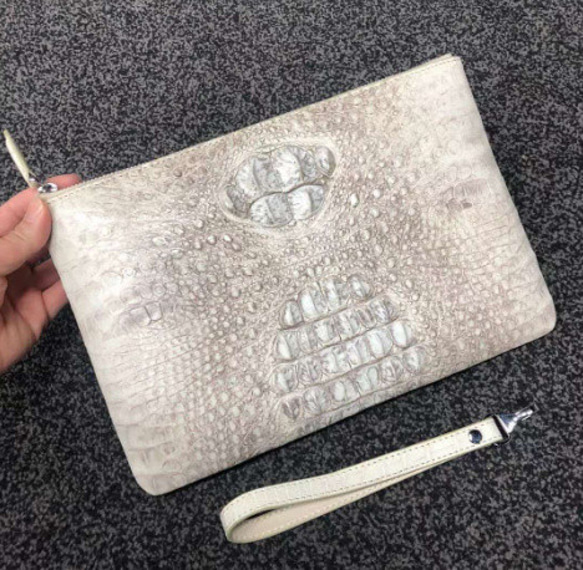 ※商品の性質上、お客様都合( イメージと違うなど )による返品・交換はお受いたしておりません。 ご注文の際には商品をよくお確かめの上、十分ご注意下さいますようお願いします。 (商品仕様・色合い等、お買い上げ前にご不明な点がございましたら、お気軽にお問合せ下さい) お手入れ方法 クロコダイルは以下の点にご注意お願いします。 1. 湿気、水分に弱い。雨、汗などは色移り、シミの原因となります。 2. 長時間日当たりのいい場所や、光線に浴びると、色が変化することがございます。 日常のお手入れ方法 乾いた布で優しく乾拭きし、表面の汚れを取る。 基本的にレザークリームを塗らなくても、手の油分がゆっくりと染み込み、経年変化を楽しめます。 レザークリームを使用する際は、爬虫類系のレザークリームを使用し、目立たない部分で試してから使用をおすすめします。 水が表面についた際は、すぐ拭き取ってください。ゴシゴシすると表面を傷つけてし まいます。優しく、ぽんぽんとたたいて水分を吸い取り、乾いた場所で自然乾燥させてください。 商品サイズ:長さ約 30㎝、縦約20㎝ ※天然素材を使用し、革本来のキズや製作時の汚れ等がある場合がございます。