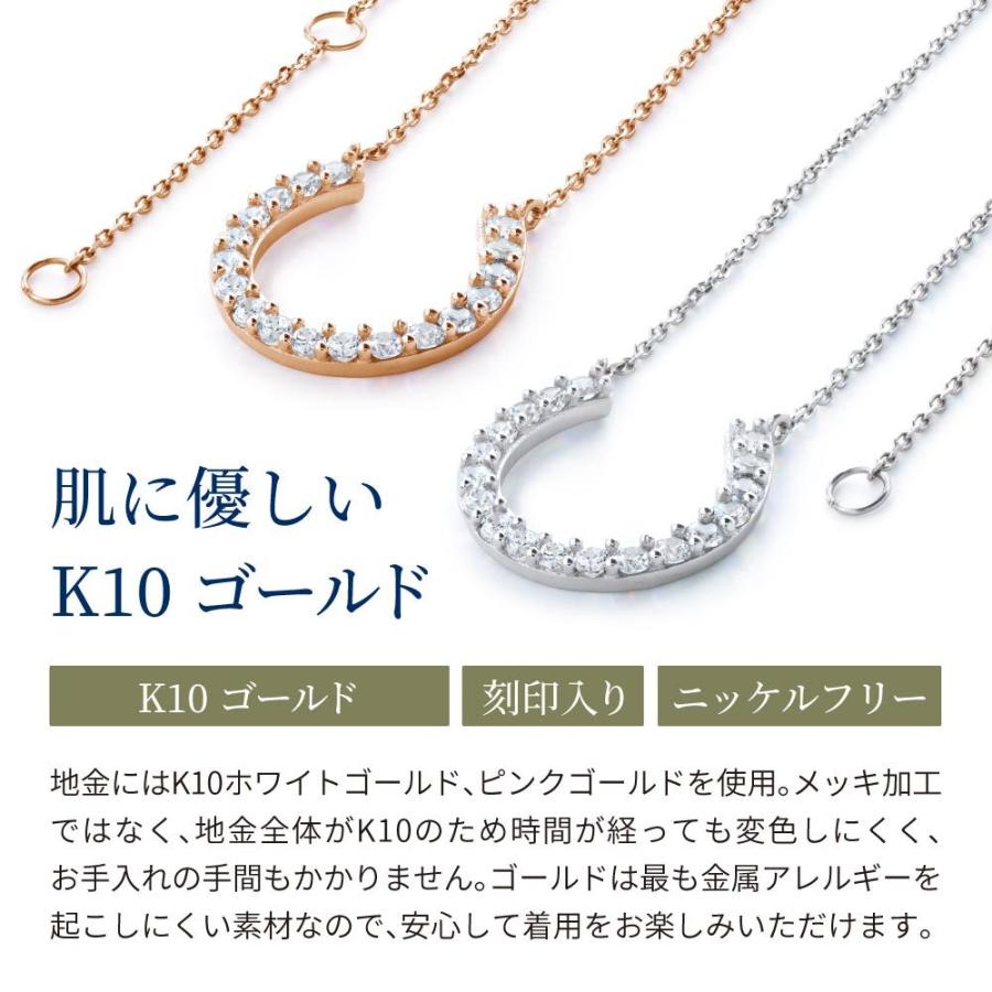 幸運のお守りとして人気のホースシュー(馬蹄)に最高級品質のczダイヤモンドを贅沢にあしらったレディースネックレス(ペンダント)。上質なK10ゴールド(10金)を使用し