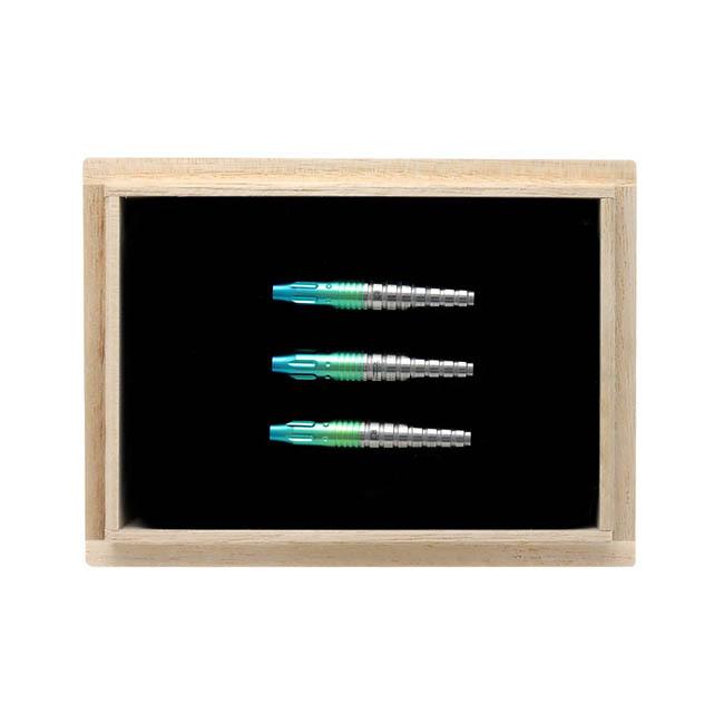 商品情報 商品仕様 スペックデータ 材質:90%タングステン+チタン セット重量:約18.0g 単体重量 :16.3g 全長:42.0mm 最大径:7.6mm タイプ:2BA 重心:Rear 内容物 ・バレル×1set(3個) 商品説明 理想的なラインを描くため、重心位置を「後ろ重心」に配置。 重心を後ろに持つことによりセンターや前重心に比べコントロールし易く、指でグリップしている感覚を重視させるカットを融合して採用しています。 Samurai dartsのトラディショナルなデザインを受け継いでいます。 ご注意 ※製品によっては多少色ムラがある場合がございます。 ※こちらはバレルのみの商品となります。シャフト、フライト等は別途お買い求めください。 ※商品ページ掲載の商品仕様や、パッケージ・デザイン・付属品等は、予告無しに変更となる場合がございます。 予めご了承下さい。 |