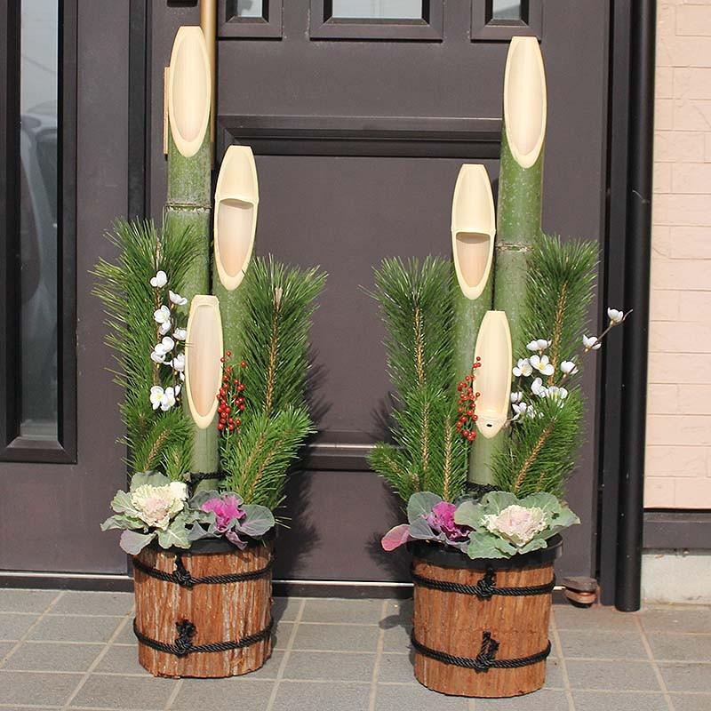 商品情報 玄関前などにも飾りやすい約95cm〜1mサイズ 門松を1対(2個セット)にして! 飾りやすい「門松」です。 鉢仕立てですので、オシャレな鉢カバーに入れてセッティングしても良いですし、そのまま飾ってもGOOD! 葉ボタン付きでのお届けになります(※葉ボタンのサイズは、生きた植物なため、写真とややサイズが前後してしまう場合がございます。) ※梅&梅花&南天(赤い実等)は長い間楽しめる人工を使用しております。それ以外の竹などは本物です。 設置後サイズ 高さ 約95cm〜1m(鉢底より) 【こちらの商品は、大変申し訳ございませんが、北海道・沖縄・離島へはお送りできません。】 ※宅配でのお届けになります。 ※写真は、設置イメージ画像になります。 最終お届け日は、12/27 午前中になります。 日時指定がない場合は、12/27 AM指定でのお届けになります。 ※配達希望日は、最終お届け日 12/27 午前中まででご注文時にご記入くださいませ。 ※このページの商品は大型であるため、他の商品を同時にお買い上げになりましても送料を別途頂戴いたします。 ※門松の引き取りは行っておりません。 |