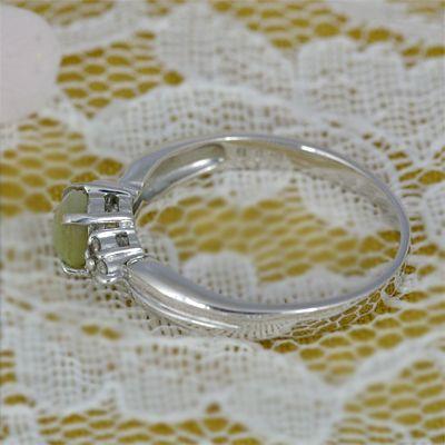 センターにクリソベリルキャッツアイ1石、両サイドにダイヤモンド3石ずつ計6石をセットしたリングです。シンプルなデザインですがクリソベリルキャッツアイの