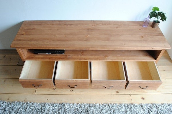【ご注意】下記の3項目を必ず最初にお読みください。 《現在、在庫は一切なく、完全受注製作となっております。》 《現時点でのご注文で2025年(来年)の4月中のお届けとなっております。》 《発送目安日は関係ございませんのでご注意ください。》 ご覧いただきありがとうございます 既製品には無い、ハンドメイドの温もりのある家具をお届けいたします。 木目を生かしたオイルフィニッシュの無垢材に、アイアンで表情を引き締めたローボードです。 マイルドなアンティーク風加工なので、設置したお部屋に溶け込んで、雰囲気に温かみを与えます。 ワイドな上部収納部にはAV機器が複数台収納可能で、引き出し収納も4杯ございますので、 収納力バツグンな仕様となっております。 リビング・寝室・子供部屋などにいかがでしょうか? カフェなどのお店の什器としても最適です。 お部屋が一気に片付きますよ♪ また、サイズ・仕様変更オーダーをお請けしております。 どうぞ、商品のご質問欄より、お客様のご希望をお聞かせ下さい。 ご希望に沿った、世界で一つだけの家具を作製させて頂きます。 【商品寸法】 《本体》 横150.0cm x 奥行43.0cm x 高さ45.0cm 《上段収納部》 横136.5cm × 奥行き38.0cm × 高さ14.0cm 《引き出し内寸》 横30.5cm × 奥行き34.0cm × 深さ13.0cm) 《注意》 作品は注文を頂いてから製作する受注生産となっておりますので、ご購入ご検討の際は必ず《発送までの目安》をご確認くださいませ。 天然木材を使用したハンドメイド品なので精密さはありませんので、ご理解のうえ入札宜しくお願いします。 画像はサンプルです。お届けする商品とは木目、節、小キズの位置や、ペイントの剥げ具合などに多少の違いがあります事をご了承ください。 本州離島につきましては、別途送料がかかりますので、必ず購入前にご相談下さい。 その他、不明な点はご質問ください。 |