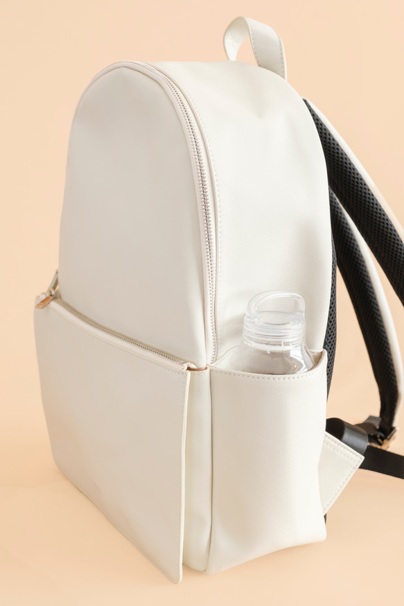 【商品概要】 ・廃棄リンゴから生まれた植物由来の「アップルレザー」を使ったリュックサック。 ・スタイリッシュながら丸みのあるシルエットが上品なデザインで、ビジネスシーンにもぴったり。 ・超軽量な国産のアップルレザーを採用しており、重さはたったのりんご約2個分。 ・耐水性がある素材なので、濡れてもサッと拭くだけで、お手入れが完了。 ・内側には、13インチのラップトップが収納可能なスリーブ付き。 ・本体に備え付けのキーリングがあり、バッグの中で行方不明になりがちな鍵をスマートに持ち運び可能。 ・サイドのポケットはマイボトルやスマホが収納可能。 ・大きなフロントポケットには、しっかりマチがあるため、厚みのある本やクッションファンデーションなどを入れても対応できるサイズ感。 【素材】 ・青森県のリンゴから産まれたアップルレザー「aplena(アプレナ)」を採用。 ・リンゴジュースの搾りかす(産業廃棄物)をアップサイクルした植物由来のヴィーガンレザー。 ・撥水性に優れ、お手入れも簡単。 【仕様】 ・本体:38cm(高さ)× 27cm(横)×12cm(マチ) ・フロントポケット: 幅27cm × 縦17cm ・インナーポケット: 幅18cm × 縦15cm 重さ: 約750g |