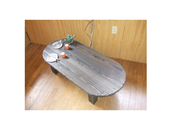 ★大きさと重量 横長さ約110cm 奥行き約60cm 天板高さ約35cm 天板厚み約3cm 重さ約14キロ ★作品説明★ 樹齢50年以上の奈良県ブランドの 銘木吉野杉を2年間当工房で 自然乾燥させた後製作いたしました 天板は柔らかい質感のアールでカットし コヤ木工独特の彫刻を施し 美しさを出しました 表面はノスタルジックな質感を 感じて頂けるよう 古来日本建築で使用された技法で 天然素材の松墨を砕いた塗料を 製作して染めを施し 学校建築でも推奨される安全性の 水性ニスで天板コーティングをしております 脚は固定式になります 設計で重量約14キロと 天然の木を用いたクラスでは 大変軽量ですので移動とお掃除も楽々です 自然の木で若干の小ヒビある事が御座いますが 質感と強度に問題は無いと思います 和・洋・アジア・様々な空間に違和感無く 確かな存在感と創りたての木の優しい香りを ご堪能頂けましたら幸いです ★店舗用に複数台数やサイズ違い等は お気軽にお見積りお伺い下さい 心を込めてお創りします 納期や保証、施工例などはプロフィール欄を ご覧下さいませ ★ヤマト運輸発送になります 着日と午前中又は12時~21時までご相談頂けます 発送後は伝票番号等ご連絡させて頂きます ★発送時、組み立てとお手入れ方法お手紙等を 同梱させて頂きます お手数をお掛け致しますが 到着後脚と天板をお付け頂け下さいませ プラスドライバー1本ご用意頂けましたら幸いです
