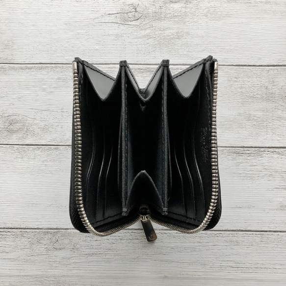 こちらは受注製作となります。お支払い完了後の製作となります。 *製作期間はプロフィールに記載しております。 別で出品中のオプションで小銭入れ横にレシートやカードを入れられるパーツを追加できるようになりました。併せてご検討お願い致します。 内装画像は小銭入れ横ポケットを付けた物になります。 オプション購入なしの場合は小銭入れ横ポケットは付きませんのでご注意願います。 【小銭入れサイドポケット追加オプション 】 外装:艶が美しく年々希少価値が上がっているコードバンの中でも、さらに入手困難なホーウィン社のシェルコードバンを使用しております。 入荷時からの薄い線キズ. 色ムラ. 毛穴など、アメリカンクオリティですが、ワイルドな天然皮革感とコードバンの艶がそれを打ち消してくれます。 内装:サドルレザー 片側マチ無しにする事でお札を折らずに入れる事を可能にしました。 他には無いタイプのお札の入れ方、出し方で 二つ折りにして入れる 出して広げるという煩わしさが無く、小銭入れも両側マチ付きで取り出しやすく 会計時に[ワンアクション]でスムーズにお支払いできるミニウォレットです。 最後の画像の様に小銭入れ部のマチを押すなどして 小銭入れを持ち上げた状態にするとお札を入れやすいと思います。入れるのは慣れてしまえば簡単です。 お札は二つ折りの場合は縦でも横でも入ります。 お釣りを受け取り、上記の入れ方ですぐに入れ難い場合にはとりあえず二つ折りで素早く入れておけばスムーズにレジから撤収できます。 お札を出す時は引っ張ればスルっと出ます。 もちろん逆さまにして振っても小銭がカード入れ側に出てしまう事はありません。 これだけで財布としての機能は充分ありますので小さなバッグで出かける時にも重宝します。 ファスナーはYKKエクセラを使用しており、務歯全てに磨きがかけられている 非常に綺麗なファスナーで使い込む程滑らかになっていきます。 金具はゴールド (ゴールデンブラス) シルバー(ニッケル) 布地は黒 焦茶 ベージュ、から選択できます。 (ファスナーその他カラーをご希望の場合は別で出品中の【ファスナー布地. 金具取り寄せカラーサンプル】の方を一緒に購入して下さい) 【ファスナー布地. 金具取り寄せオーダー用ページ】 素材 外装 Horween shell cordvan 内装 サドルレザー カード入れ3段×2 サイズ 約11×9.5×2.5 (cm)