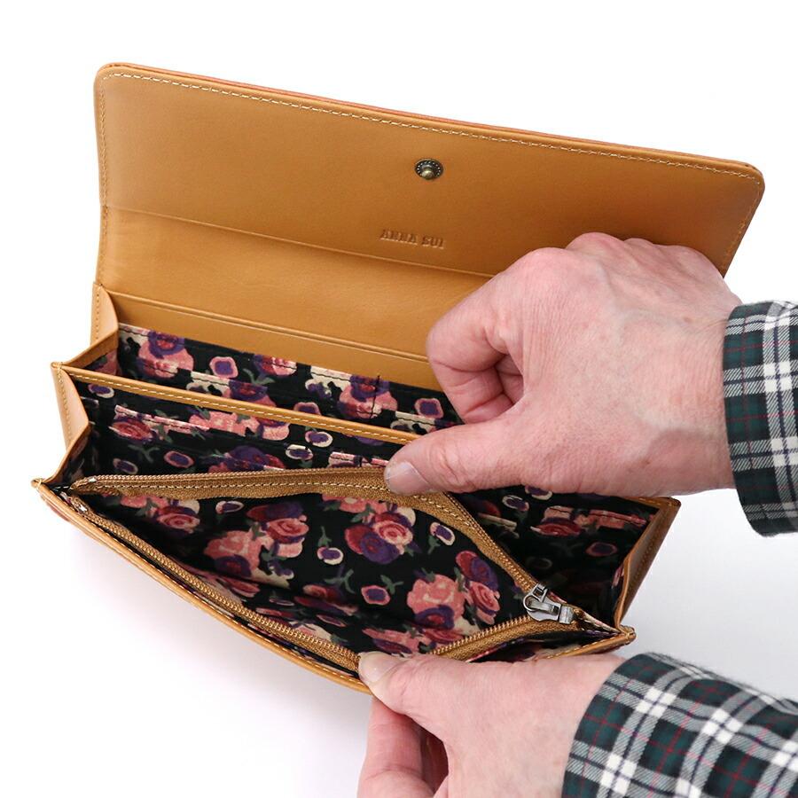 商品情報 【サイズ】 縦幅10cmx横幅19cmxマチ幅3.5cm 【仕様】がま口ポケット(内ポケット大×2,内ポケット小×2),カードポケット×10, フラップ裏ポケット,ジップ小銭入れ,札入れ×2,その他ポケット大×3 【素材】牛革 【コメント】 シエスタ=休息、安息、慰安 やさしくゆったりとした時間が流れる今季のアナスイのコレクションからインスパイアされた’シエスタ’シリーズ。 花柄のエンボスと手作業によるシャドウテクニックがクラフト感のあるデザインに仕上がりました。 そのクラフト感が、裏地の花柄プリントとぴったり合って可愛らしさを増しています。 エンボス、シャドウ、スタッズ、スカラップ・・・ 愛着も持って永く大事に使ってもらいたいという思いを込めて、こだわりを詰め込んだ財布シリーズになっています |