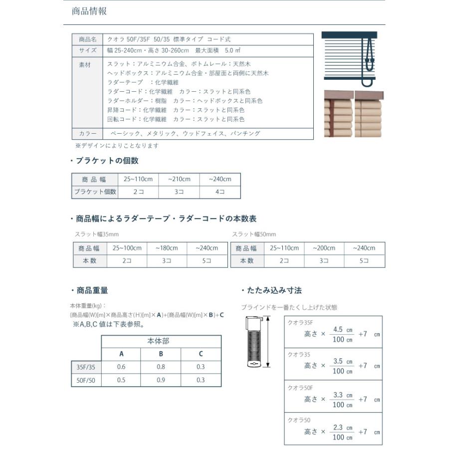 商品情報1cm単位でサイズ指定! 【クオラ50・50F・35F・35 標準タイプ ウッドフェイス コード式】アルミブラインド ニチベイ スラット 7カラー |