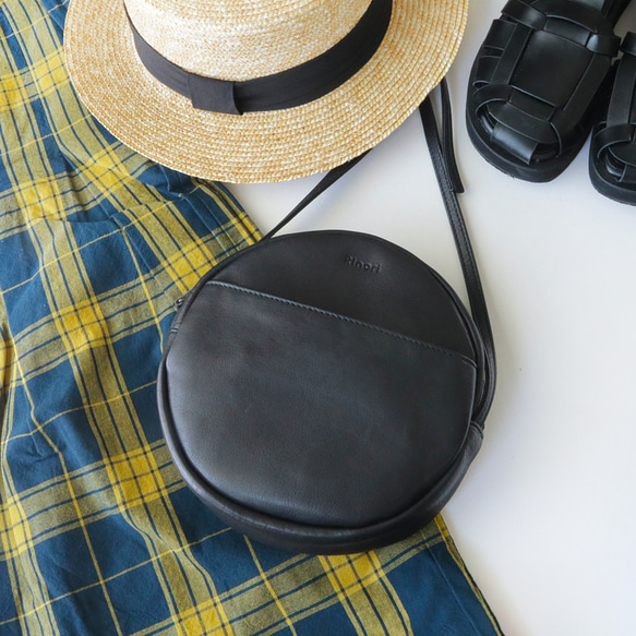 ◆抜け感がほしい この商品をつくるきっかけは、「カッチリめコーデのときに合わせる抜け感のある革バッグがほしい」のお声から。革は堅く重たいイメージを持たれがち。そこで抜け感をテーマに軽やかにラフに使えるバッグをつくりました。 ◆ラフなサークル型 まんまる過ぎない、大人が使えるサークル型に仕上げました。 ◆あると便利な外ポケット付き 外ポケット内側にはICカードがぴったり入るミニ隠しポケット付き。SuicaやPASMOの定位置に。 ◆上半分が開くファスナー ファスナーは大きく、上半分が開くようにつくりました。柔らかい革とあいまって、ガバっと開くので丸型でも中身が見やすくできあがりました。 ◆ご近所使いに十分な収納力 お財布・スマホ・キーケース・本・ハンカチなどご近所のお出かけに必要なものは入る収納力です。(長財布は収納不可) ◆毎日使いたくなる軽さ バッグ自体を軽く、荷物を入れても負担になりにくい重さ約200グラム。余分な金具は極力排除し、革選びもこだわり軽やかに仕上げています。 *本革のため重さには個体差があります。 ◆革の質感について 革の初心者でも使いやすい、やわらかくてキズが目立ちにくい本革(牛革)を使用。手で容易に形を変えられるほどの優しい柔らかさです。 [革の個性のこと] 本革を使用していますので、表情やキズなどに個体差があります。 天然皮革の証「ナチュラルマーク」と呼ばれる、生前のキズ・血筋と呼ばれる血管の後・太く硬い毛の痕・虫刺されの後などもございます。 天然皮革の特徴と、可能な限りあますことなくいただく持続可能な素材、環境配慮への取り組みをご理解賜りますようお願い致します。 --------------------------------------------------- ●生産国:日本 ●ブランド:Rinori(リノリ) ●素材:牛革 (内装 リネンコットン) ●サイズ(外寸):幅約19×高さ約19×厚み約5(cm) ●外ポケット:約高さ12.5(cm) ●ショルダー紐:約117-129(cm)※紐は取り外し不可 ●ショルダー紐調整:3㎝ピッチで5穴 ●ショルダー紐幅:1(cm) ●重さ:約200グラム *本革を使用しているため重さには個体差が発生いたします。 *商品の寸法(サイズ)表示は概寸です。本革を使用しているため個体差があります。 *柔らかな本革をしておりますため、正円ではございません。 【本革製品にはひとつひとつ個性があります】 ●同じカラーでも生産時期、ロットなどにより色味や濃淡が異なる場合がございます。 ●革の硬さ、柔らかさなどにも個体差がございます。 ●革生来の傷や痕がある場合がございます。(血管、毛穴の痕、ムラなど)また、部位や個体差により、ひとつひとつ模様の出方が異なります。 これらは本革の特徴であり、不良品ではないため交換の対象外となります。 #旅行アイテム2024